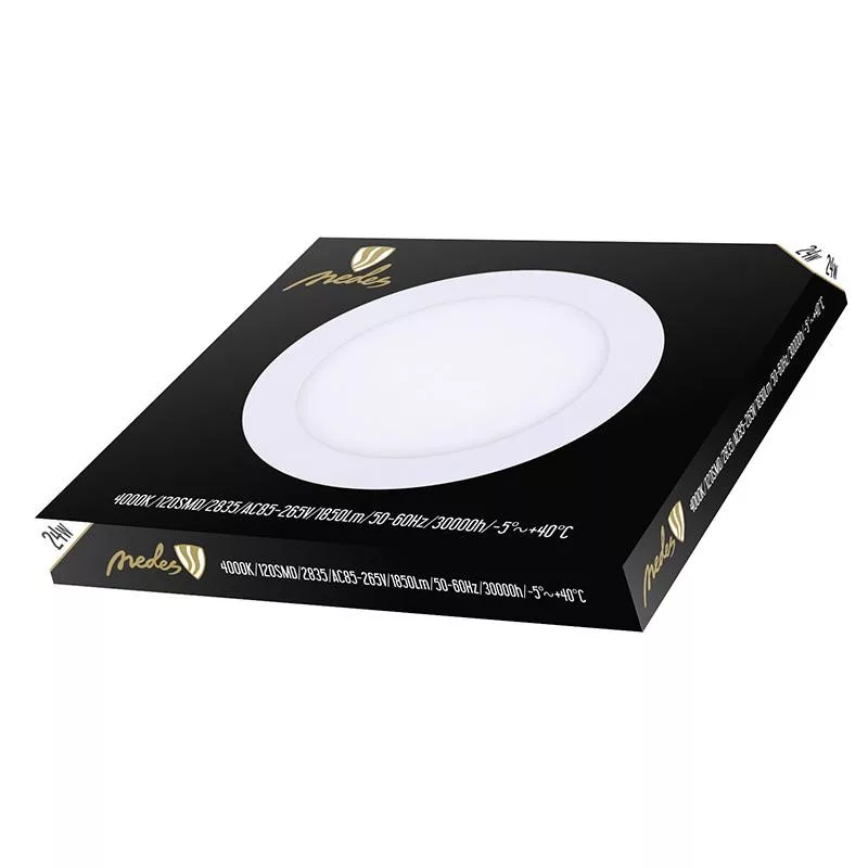 Technikailag a panel 24W teljesítményű, 1850 lumen fényárammal, természetes fehér (4000K) színhőmérséklettel rendelkezik. Sugárzási szöge 120°, feszültségellátása AC85-265V. Az IP20 védettség belső használathoz ideális. Anyaga fehér alumínium, búrája opál, súlya 620 gramm, dimmelési képesség nélküli termék.