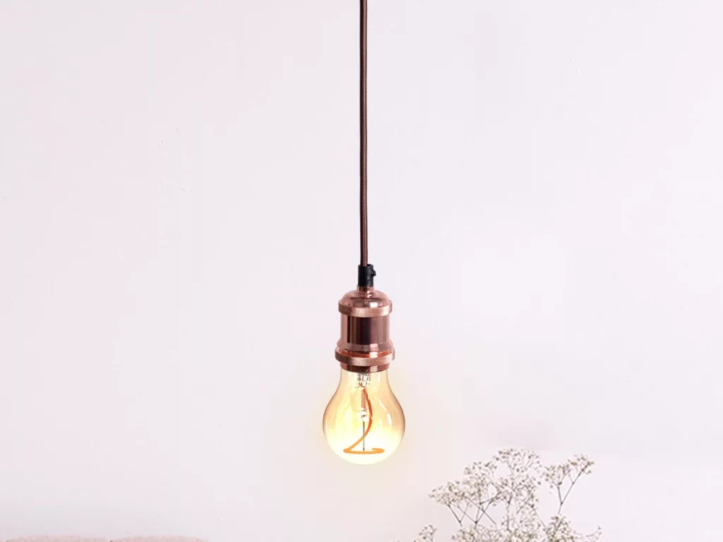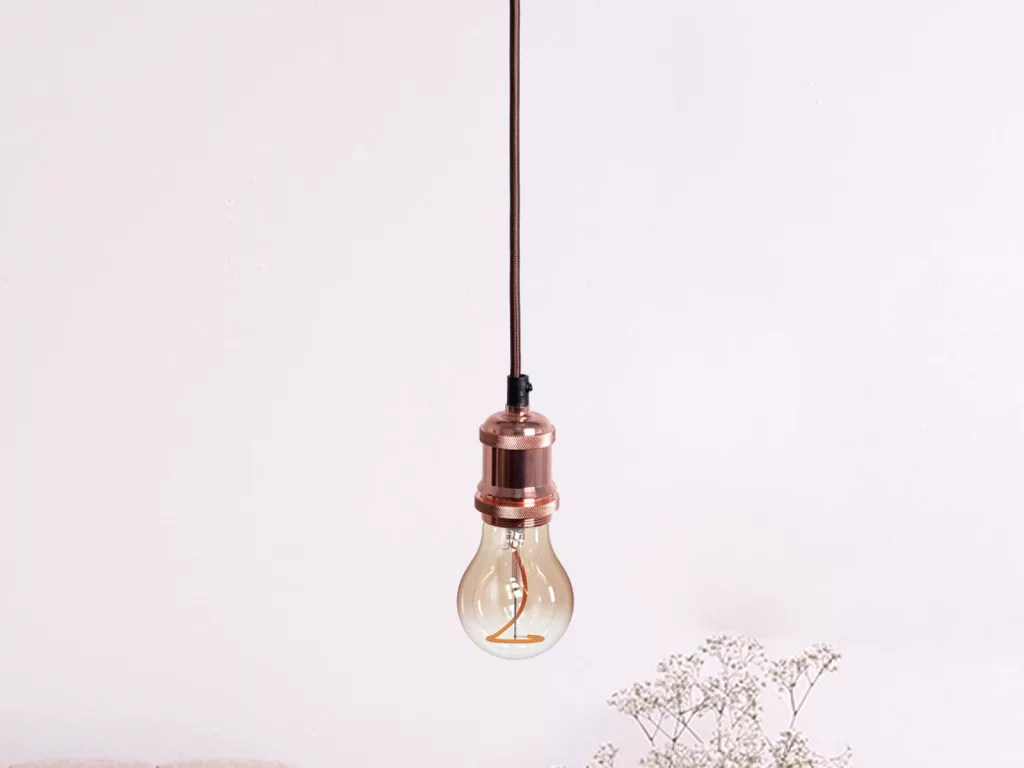 A foglalat réz bevonattal rendelkezik, amely elegáns és meleg színt ad, valamint barna, textilborítású kábellel van felszerelve, mely 1 méter hosszú.