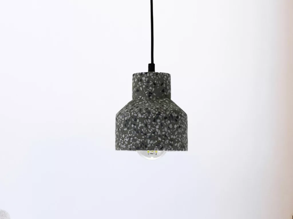 Modern és időtálló fém függőlámpa szürke terrazzo dizájnnal, kiváló minőségű anyagokból, ideális nappali, étkező és előszoba világítására. A NEDES függőlámpa elegáns, egyszerű vonalvezetésű, szürke színű kőből és fém alkatrészekből áll, így bármely tér meghatározó eleme lehet.