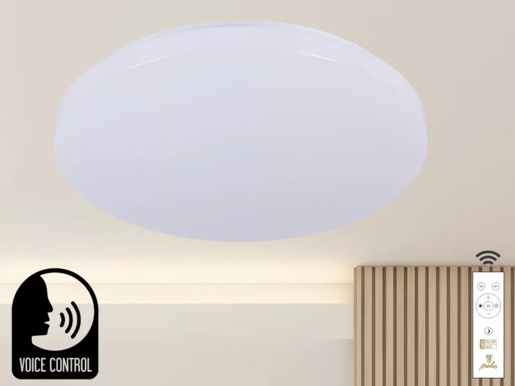 Az LC902SV LED mennyezeti lámpa egy modern, intelligens fényforrás, melynek vezérlése Wi-Fi és otthoni asszisztensek nélkül történik angol nyelvű hangutasításokkal. Lehetővé teszi a világítás be- és kikapcsolását, fényerő szabályozását, valamint a színhőmérséklet változtatását.