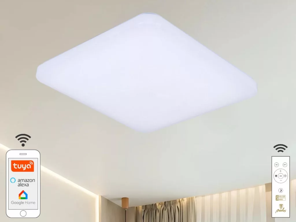 Intelligens, Wi-Fi és Bluetooth vezérelt négyzet alakú mennyezeti LED lámpa távirányítóval