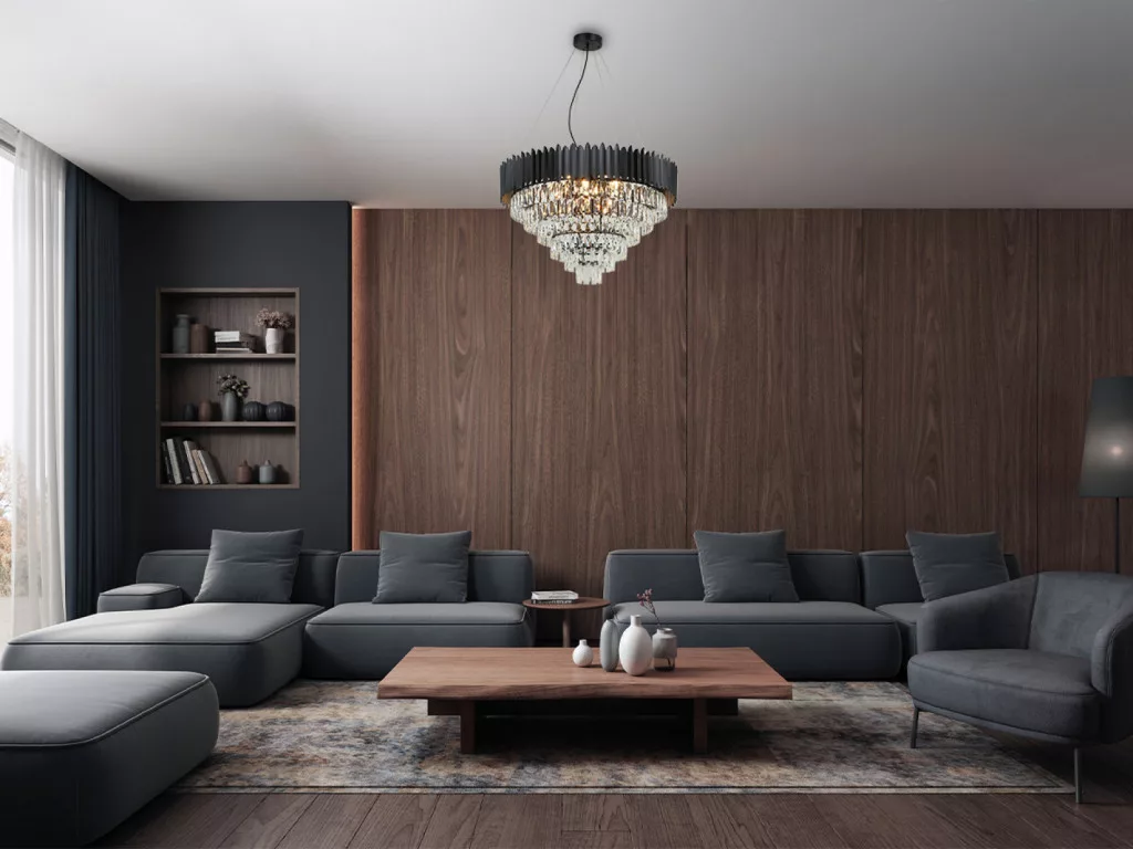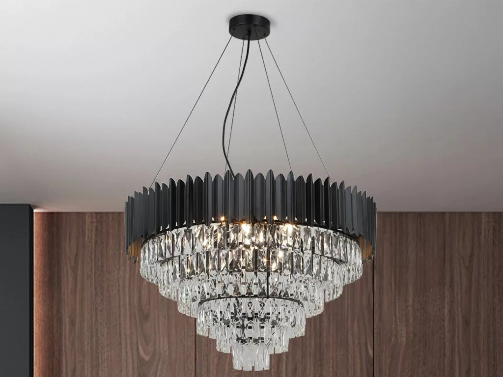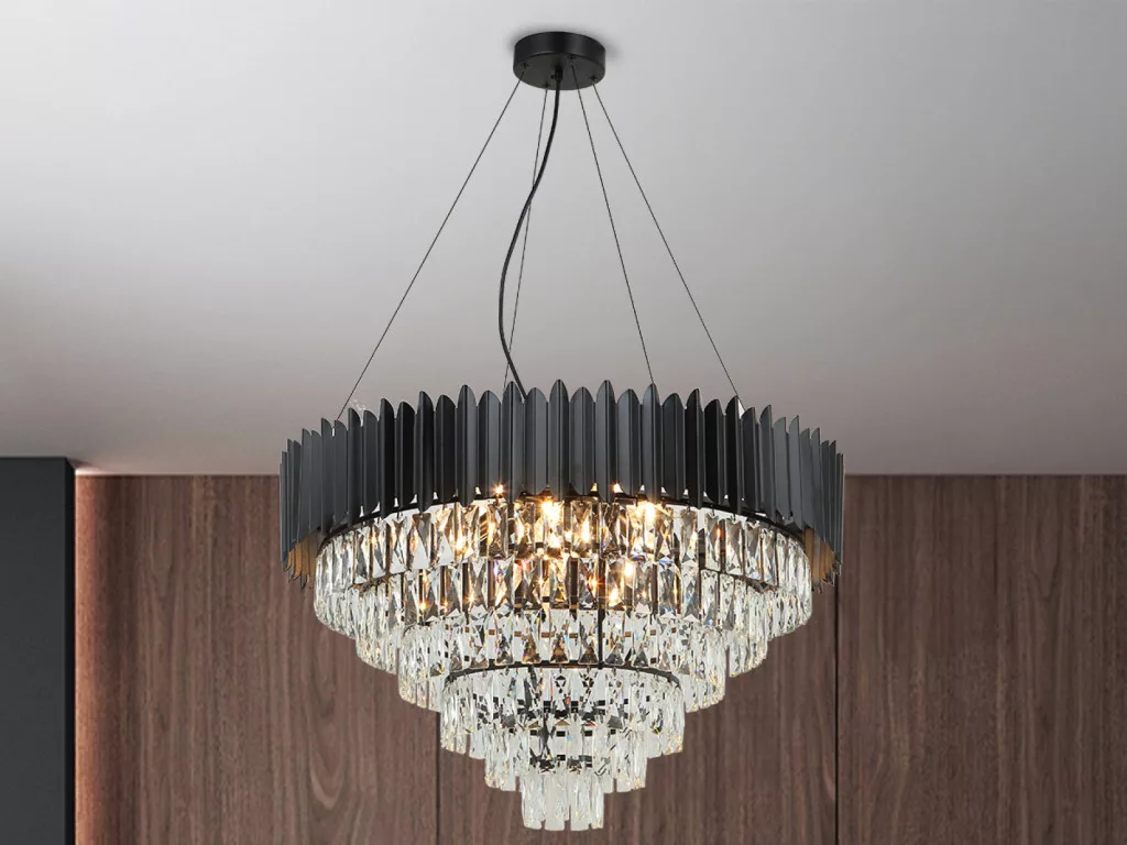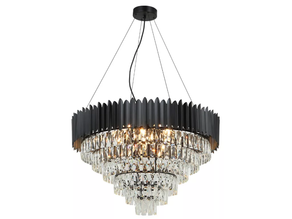 A csillár alapja prémium minőségű fém, finoman kidolgozott fekete színben. Felületét apróra csiszolt kristályok díszítik, amelyek szépen megtörik a fényt, egészen különleges világítási élményt nyújtva.