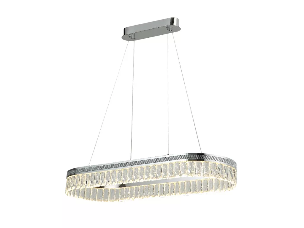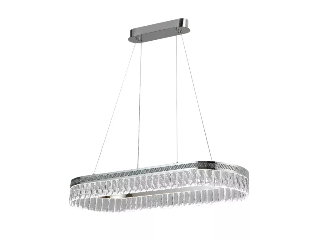 Ez a THALIA N2109 dizájn függesztett lámpa stílust és eleganciát visz otthona belső tereibe. A modern csillár fényes króm felülettel és dekoratív kristálydíszítéssel rendelkezik, így nappalik, étkezők vagy reprezentatív helyiségek központi látványeleme lesz.