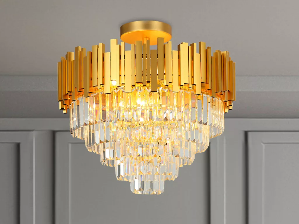 Ez a mennyezeti kristálycsillár otthona dísze lesz, mely eleganciát és nemességet sugároz bármely térben.