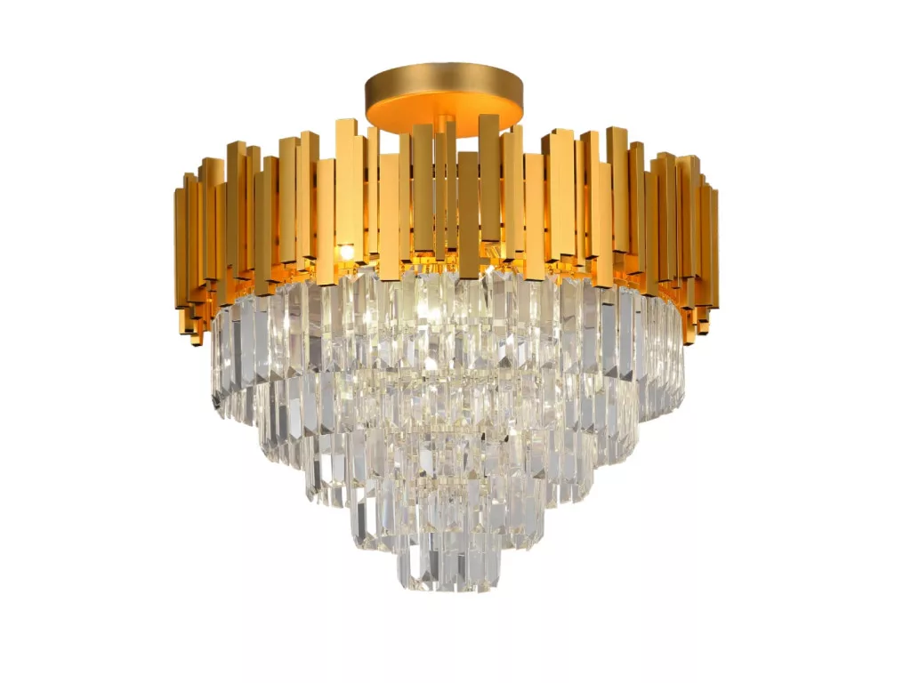 A lámpa teste prémium minőségű alumíniumból készült arany színben, mely felületét gazdag kristálydíszítés díszíti. A kristályok varázslatosan törik meg a fényt, létrehozva egyedi, ragyogó fényhatást.
