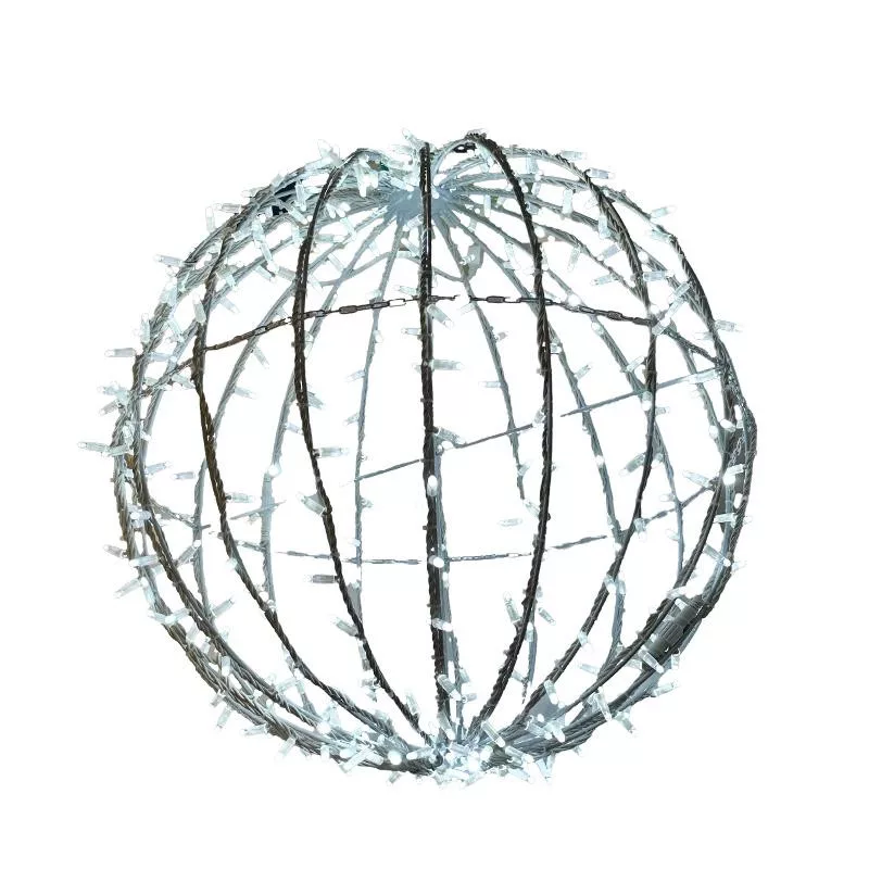 A golyós dekoráció tiszta vonalakkal sugároz hideg fehér fényt (6500K), kiváló minőségű anyagokból készült, ellenáll az időjárási viszontagságoknak.