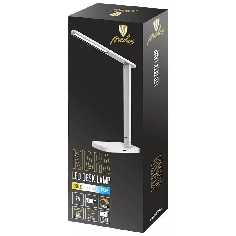 A NEDES KIARA LED asztali lámpa, 7W teljesítménnyel, dimmelhető, USB töltési lehetőséggel, éjszakai fény és időzítő funkcióval rendelkezik. Ideális gyermekszobákba, irodákba vagy otthoni munkaterületekre, kiváló minőségű LED fényt biztosít 3000K-6500K közötti állítható színhőmérséklettel.