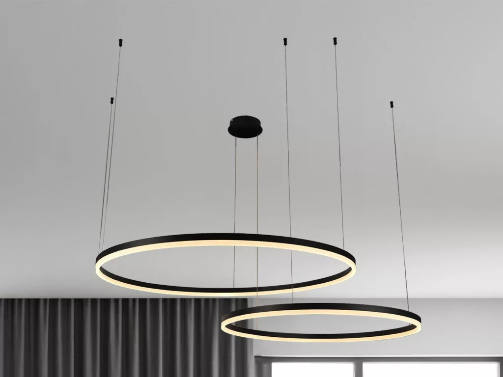 Technikai adatok: fogyasztás 100 W, fényáram 6500 lm, méret Ø600+Ø800 mm, színhőmérséklet 3000K–6500K, sugárzási szög 180°, feszültség AC160–265 V, élettartam 30 000 óra, kapcsolási ciklusok száma 25 000, védettségi s szint IP20, anyaga fém és akril. Nettó tömeg: 2400 g.