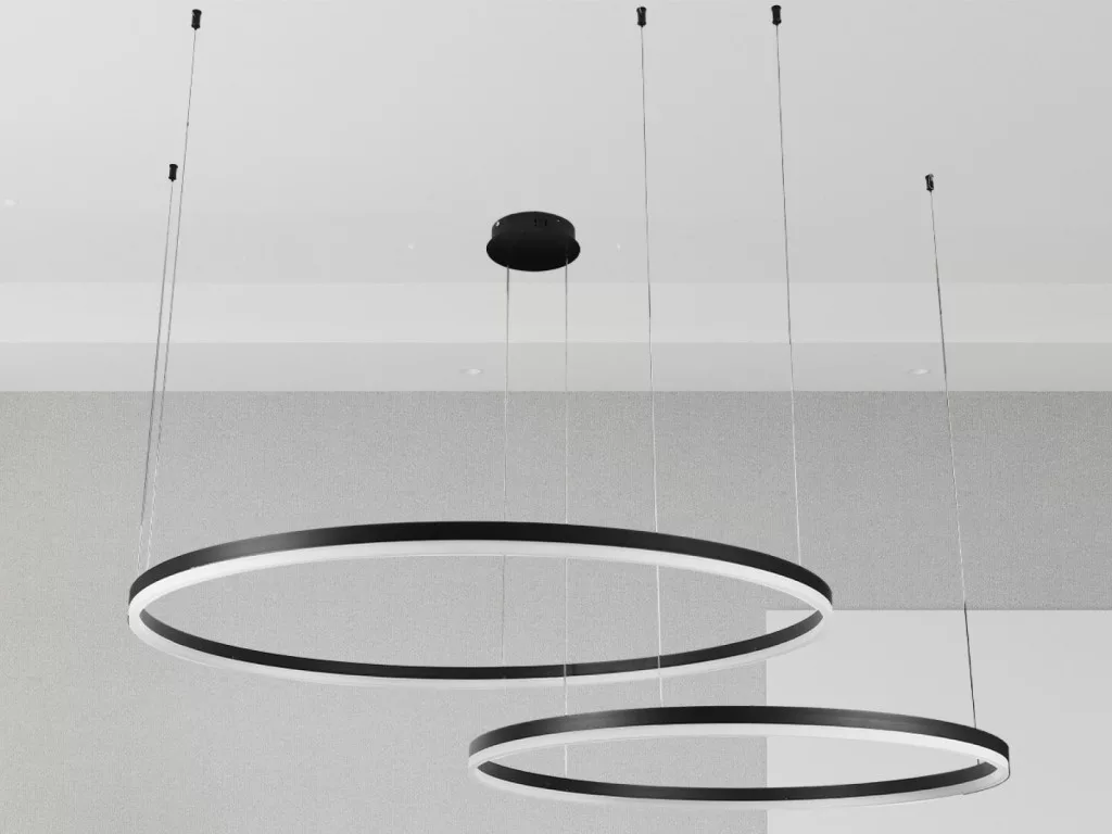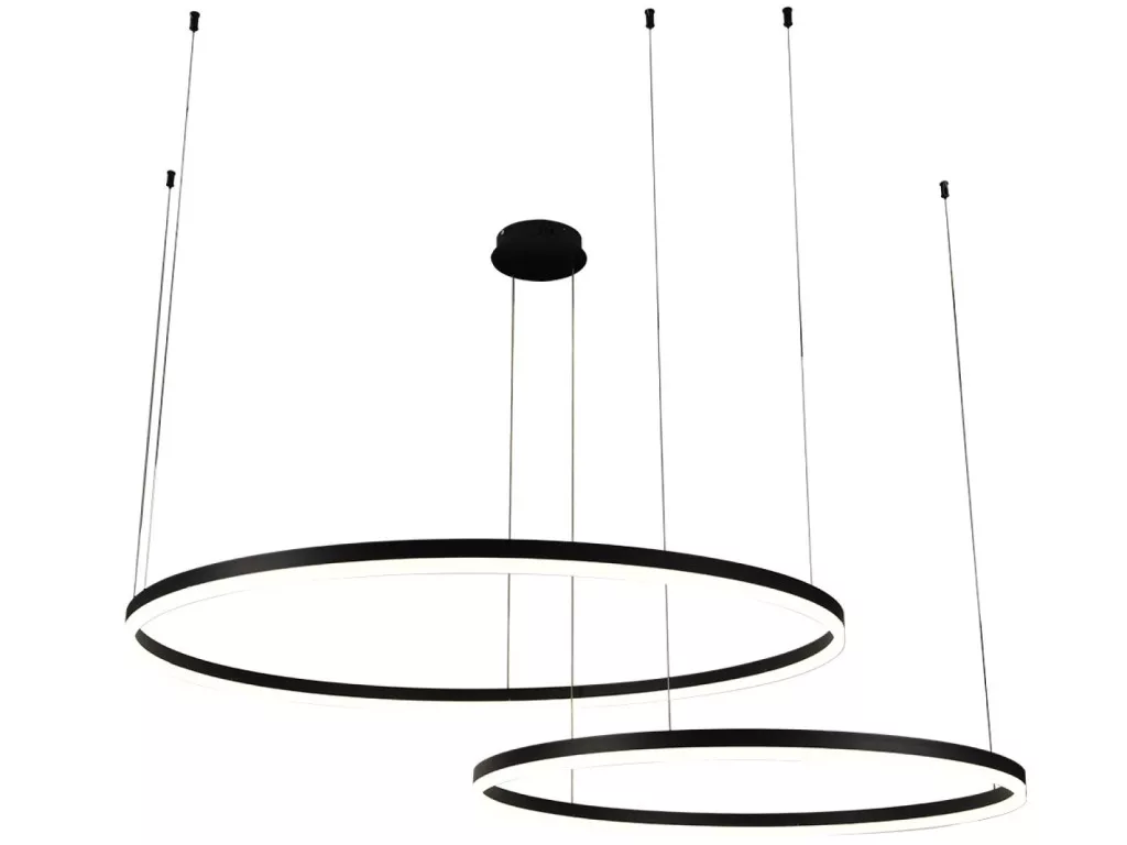 Technikai adatok: fogyasztás 128 W, fényáram 8500 lm, méret Ø800+Ø1000 mm, színhőmérséklet 3000K–6500K, sugárzási szög 180°, feszültség AC160–265 V, várható élettartam 30 000 óra, kapcsolási ciklusok száma 25 000, védettségi fokozat IP20, anyaga fém és akril. Nettó tömeg: 2900 g.