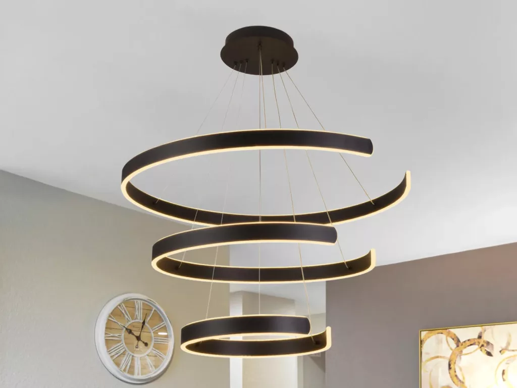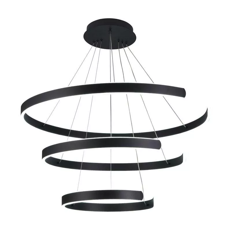 Technikai adatok: 220 W fogyasztás, 14 500 lm fényáram, 400+600+800 mm méret, 240° sugárzási szög, IP20 védelem, 30 000 óra élettartam, 25 000 kapcsolási ciklus, 3180 g nettó súly. Anyaga fém és akril, tápfeszültsége AC160-265 V.