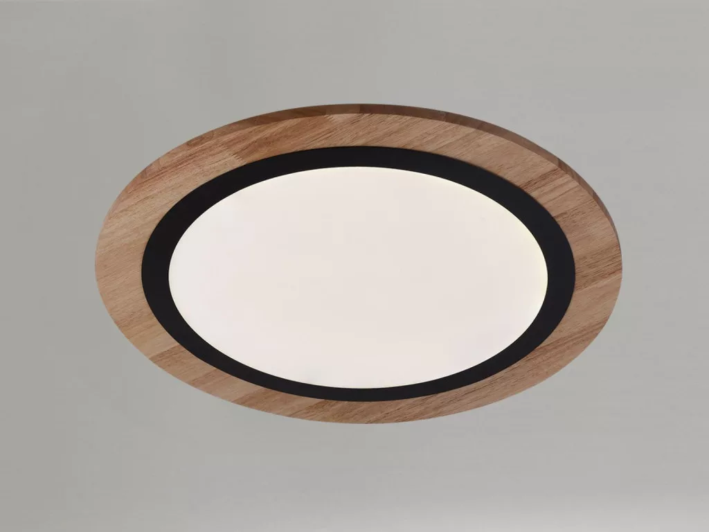 A lámpa 25W teljesítménnyel 1900 lumen fényt biztosít, mérete Ø480x60 mm, kör alakú, matt fekete és fa színű anyaga fém és akril. Védettsége IP20, tápellátása AC 160-265V, élettartama 30 000 óra.