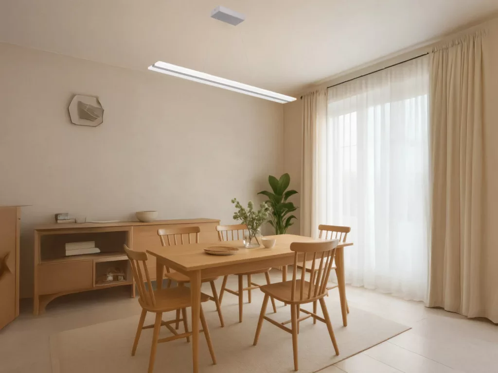 A lámpa fém/akril anyagból készül, egyedi téglalap alakú burával. IP20 védettségű, 30 000 óra élettartammal és 180° sugárzási szöggel rendelkezik. Mérete 1000x130 mm, fényereje 3300 lumen, fogyasztása 50W.