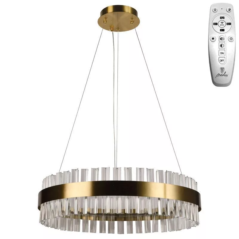Műszaki adatok: Teljesítmény 50W, fényáram 3400 lumen, méret 600 mm átmérő, fokozatmentes dimmelés, sugárzási szög 180°, feszültség AC160-265V, élettartam 30 000 óra, kapcsolási ciklusok száma 25 000, védelem IP20, anyag: fém és kristály, búratípus: 1, nettó tömeg 4620 g. A LED nem cserélhető.