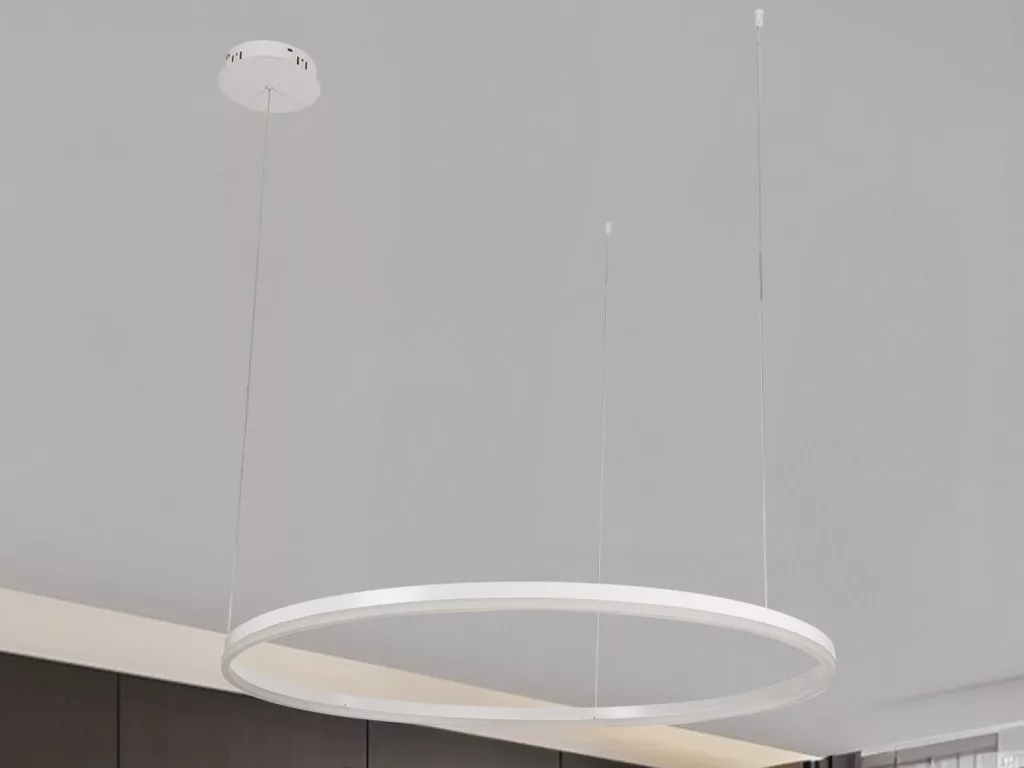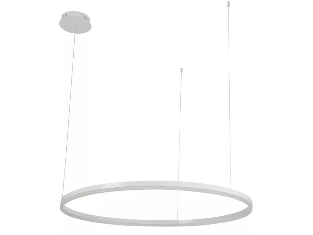 Technikai adatok: 72 W fogyasztás, 4800 lm fényáram, méret Ø1000 mm, állítható színhőmérséklet 3000K–6500K, sugárzási szög 180°, feszültség AC160–265 V, élettartam 30 000 óra, kapcsolási ciklusok száma 25 000, IP20 védettség, anyag fém és akril, nettó tömeg 1730 gramm.