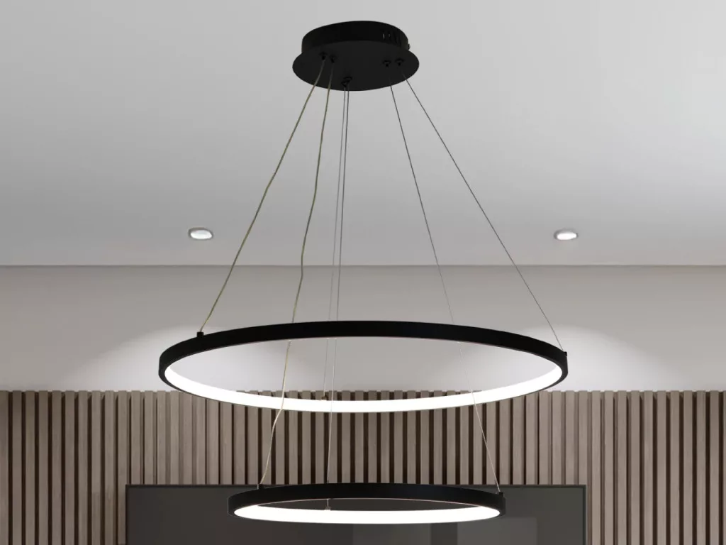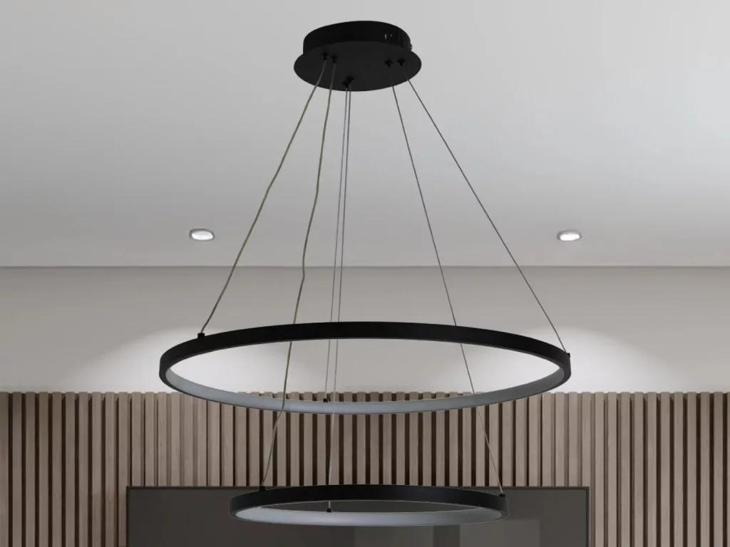 A lámpa fém/akril anyagból készül, IP20-as védelemmel, 30 000 órás várható élettartammal, és 180°-os sugárzási szöggel rendelkezik. Mérete 400+600 mm, fényereje 6100 lumen, fogyasztása pedig 75W. Ezáltal ez a modern lámpa praktikus és esztétikus megoldás az otthoni világításhoz.