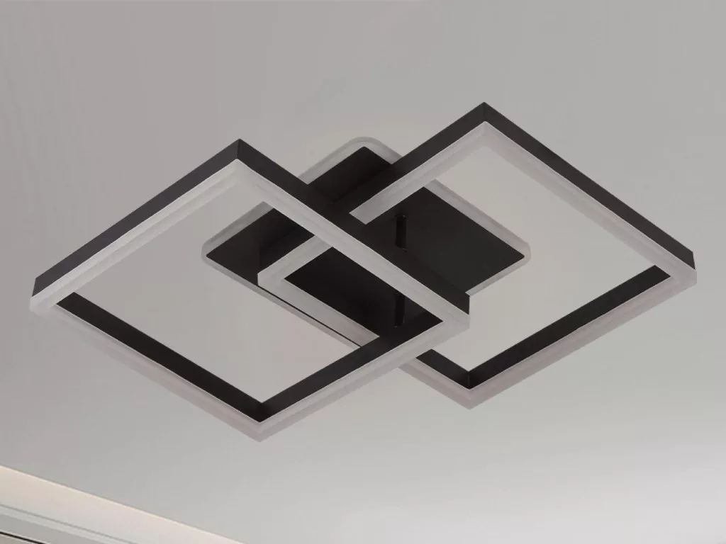A fekete színű, négyzet alakú lámpatest elegáns és modern dekorációs megoldást kínál.
