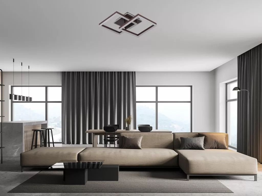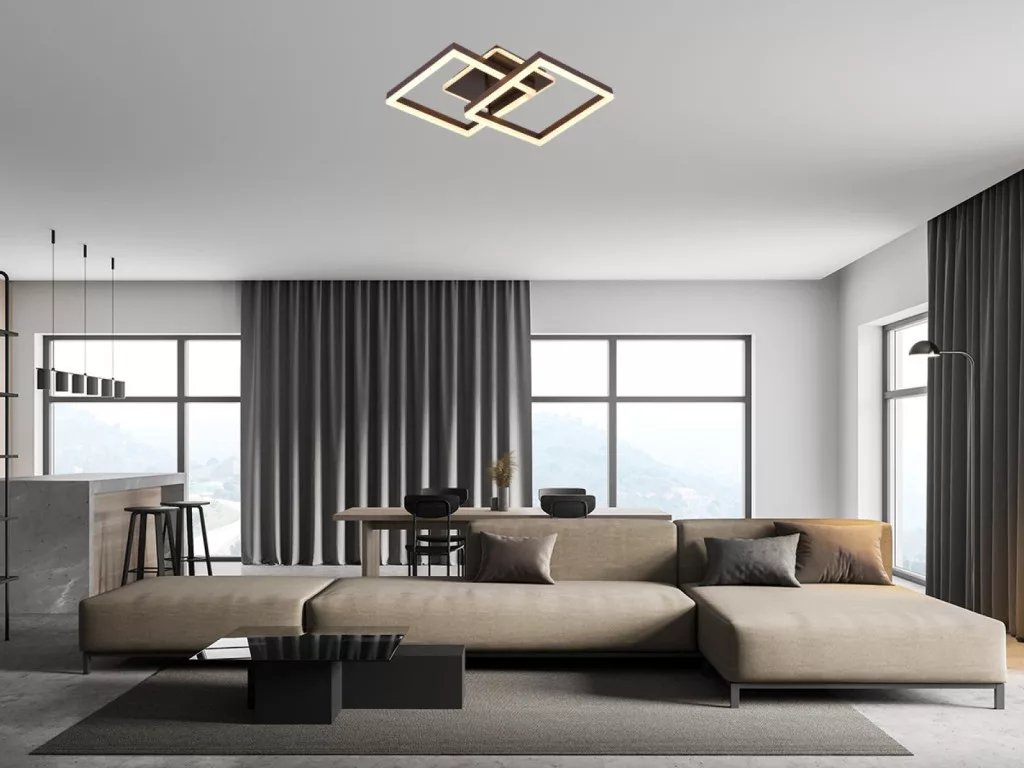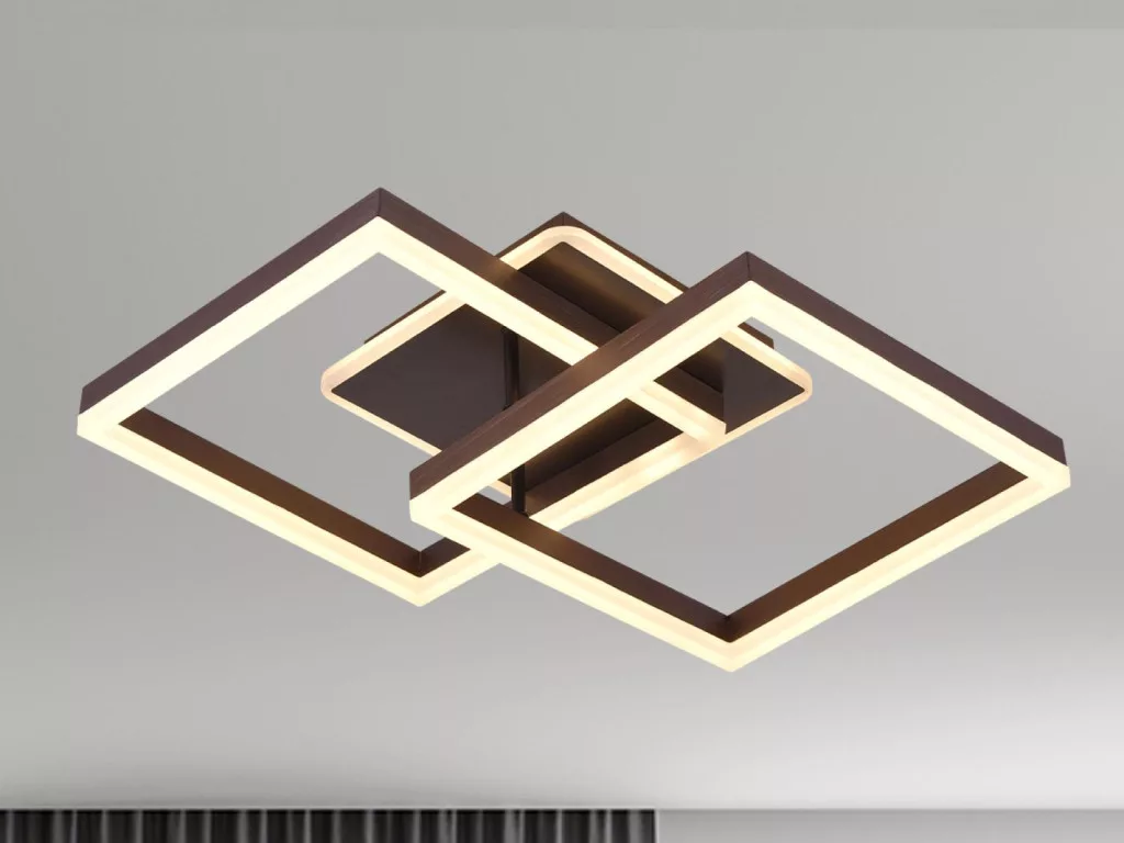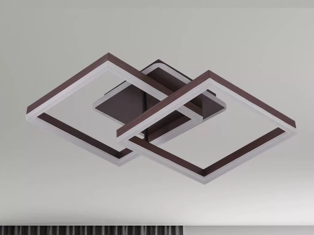 A lámpa stílusos, négyzet alakú, barna színű kivitelben érhető el, tartós és energiatakarékos fényt biztosít.