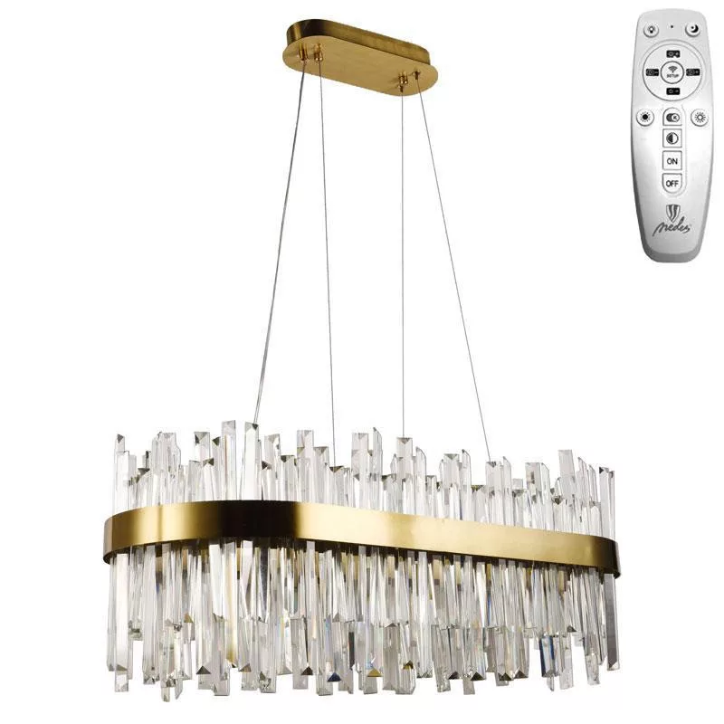 Technikai adatok: 90W fogyasztás, 7300 lumen fényáram, kör alakú, 800 mm-es méret, IP20 védettség, fém és kristály anyagból. Tápfeszültség AC160-265V, élettartam 30 000 óra, kapcsolási ciklusok száma 25 000, nettó tömege 14,56 kg, 36 hónap garancia.