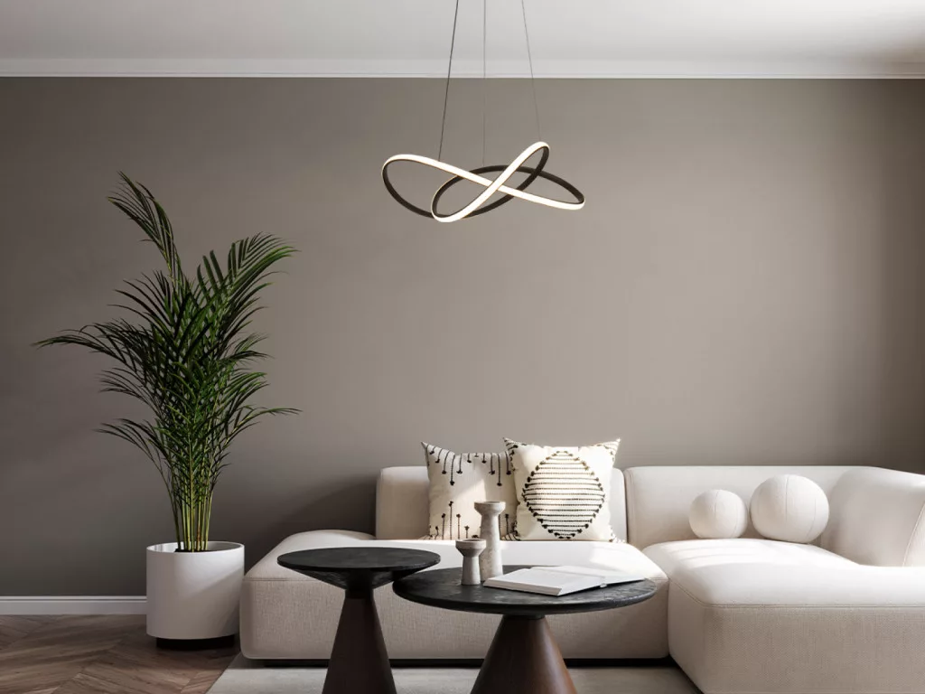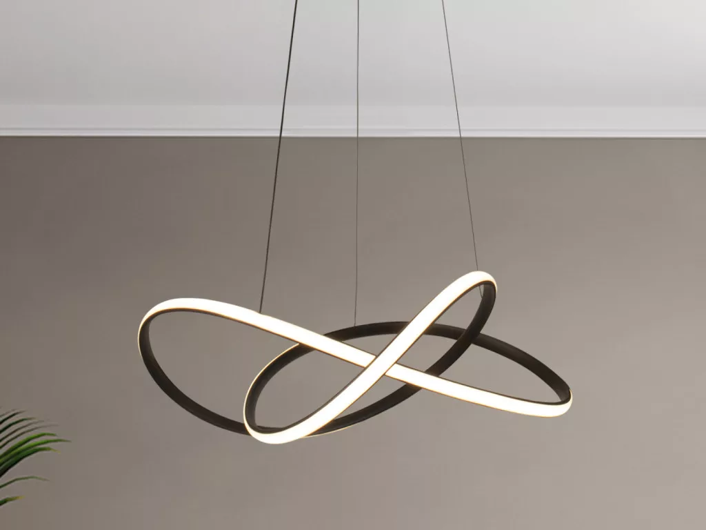LED dizájn függesztett lámpa RF 2,4GHz-es távirányítóval a NEDES márkától, amely konyhába, étkezőbe, hálószobába, folyosóra és nappaliba is egyaránt alkalmas. Ez a modern világítótest kiváló minőségű anyagokból, fém és akril kombinációjával készült, és a NEDES Smart alkalmazással Bluetooth kapcsolaton keresztül is vezérelhető.