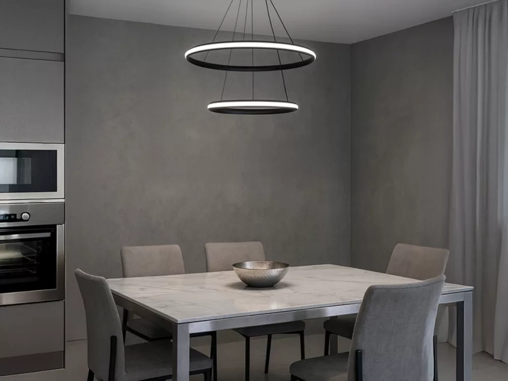 LED dizájn függesztett lámpa távirányítóval (RF 2,4GHz) a NEDES márkától, amely tökéletes választás konyhába, étkezőbe, hálószobába, folyosóra vagy nappaliba. A lámpa a modern stílust és a legmagasabb minőséget ötvözi. A vezérlés SMART technológiával történik a NEDES SMART alkalmazáson keresztül.