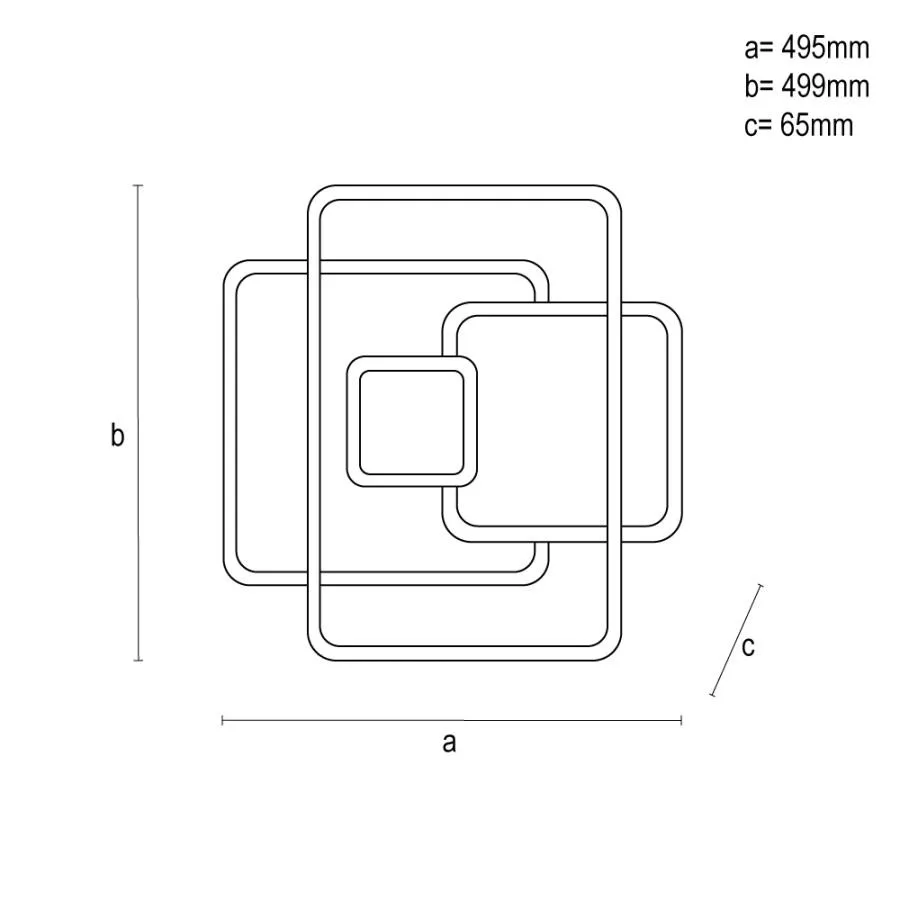 A lámpatest fém és akril anyagból készült, mérete 495x499x65 mm, fogyasztása 110 W, fényárama 6100 lumen. Védettsége IP20, élettartama akár 30 000 óra, kapcsolási ciklusainak száma 25 000, nettó tömege 2400 gramm. A LED nem cserélhető.