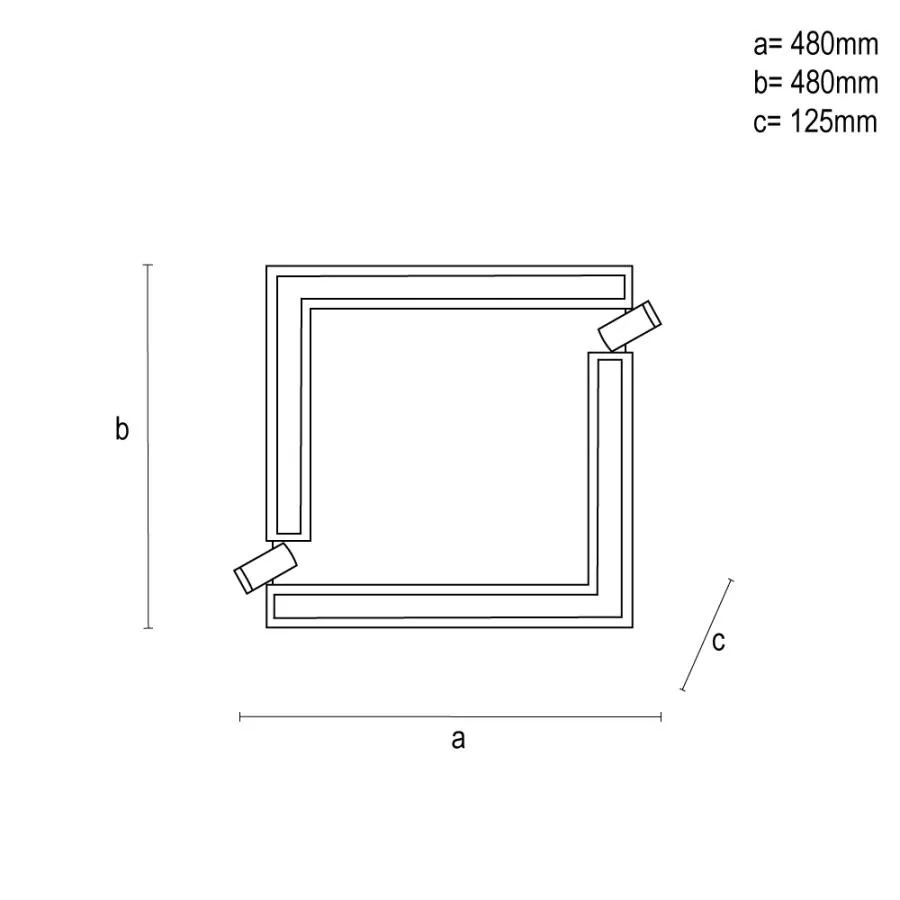 A lámpatest négyzet alakú, fém és akril anyagból készül. Mérete 480x480x125 mm, fogyasztása 80 W, fényárama 4500 lumen. IP20 védettséggel rendelkezik, élettartama 30 000 óra, kapcsolási ciklusai 25 000, nettó tömege 2540 gramm. A LED nem cserélhető.