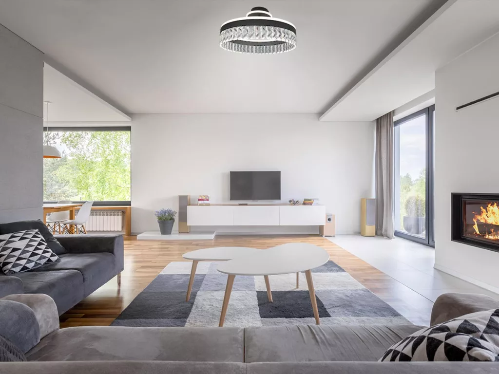 A NEDES LED dizájn mennyezeti lámpa RF 2,4 GHz-es távirányítóval és LampSmart PRO alkalmazással, ideális otthoni környezetbe, mint konyha, étkező, hálószoba, folyosó vagy nappali.