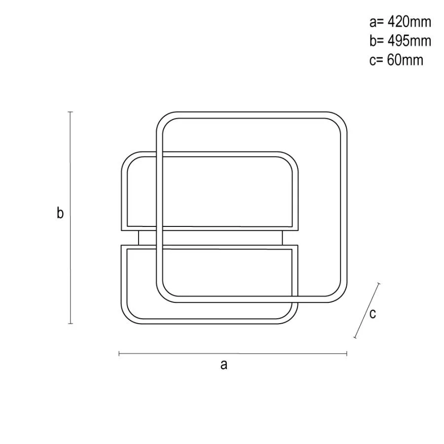 A lámpa anyaga fém és akril, formája négyzet, mérete 495x420x60 mm. Fogyasztása 95 W, fényárama 4800 lumen. Védettsége IP20, élettartama 30 000 óra, kapcsolási ciklusok száma 25 000, nettó tömege 2660 g. A LED nem cserélhető.
