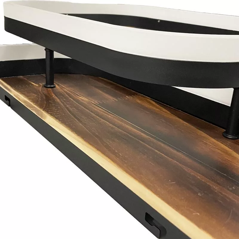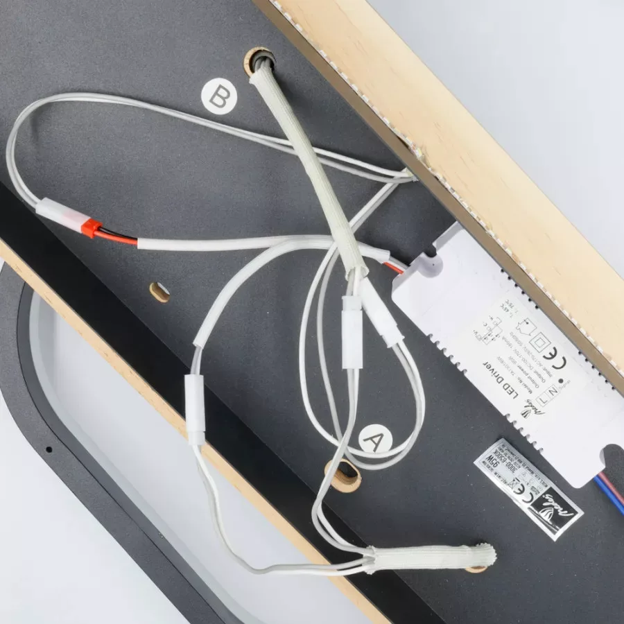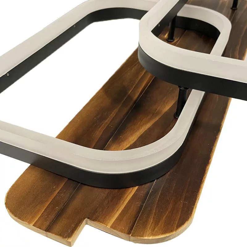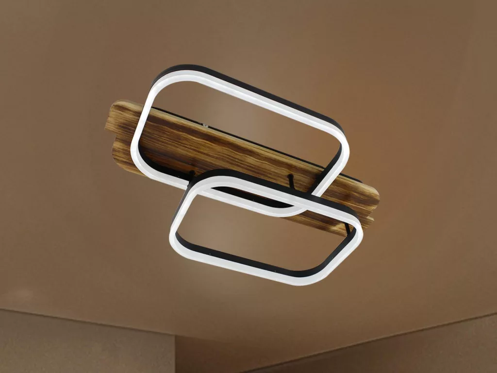 Kialakítása fém, akril és fa anyagokat ötvöz a modern design érdekében. Sugárzási szöge 180°. A LED fényforrás nem cserélhető.