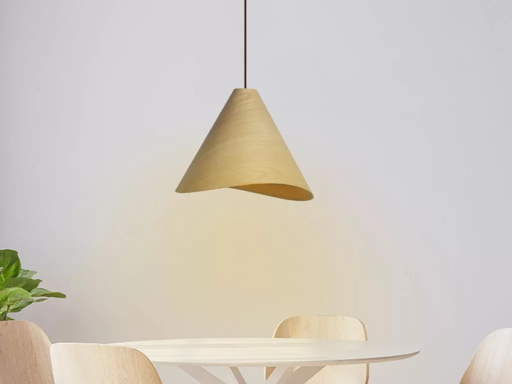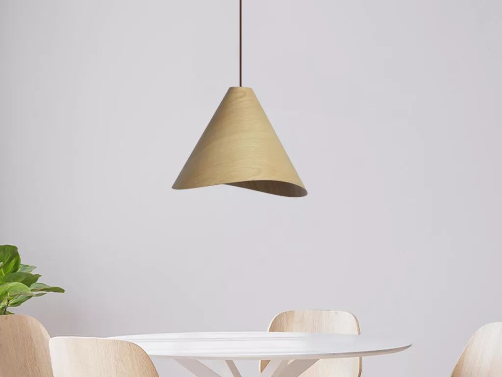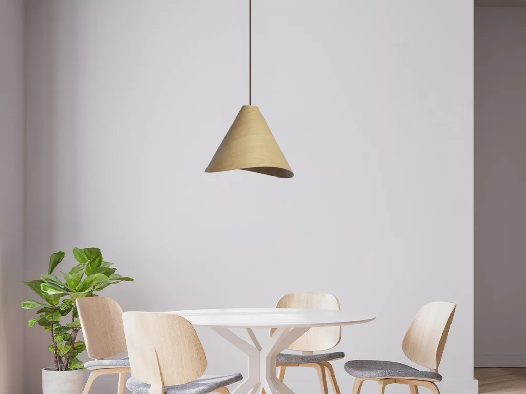 A fa anyag és jellegzetes megjelenés egyedi atmoszférát kölcsönöz, kiemelve a skandináv stílus természetes szépségét és eleganciáját. A lámpa magassága könnyen állítható, egyszerű mennyezeti szerelést biztosítva.