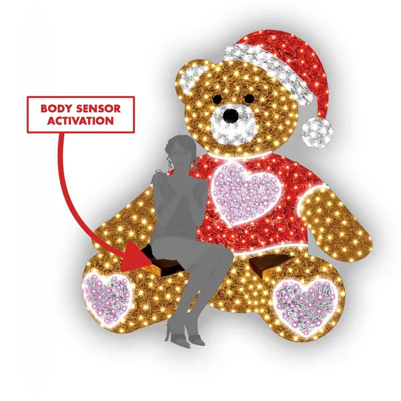 A medve közepén szív található, amely RGB színekkel világít, így színváltoztatható, a lábai hasonló fényfunkcióval rendelkeznek. Aranyos arca, szemei és orra barátságos, meleg hangulatot árasztanak.