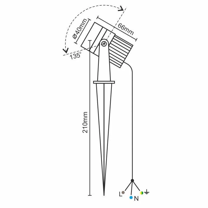 A lámpa IP67-es védettséggel rendelkezik, így teljesen víz- és porálló, alkalmas kültéri környezetben történő alkalmazásra. A mechanikai védelem szintje IK08, amely védelmet nyújt ütésekkel szemben. A fényforrás dönthetősége 135°/360°, és a sugárzási szög 30°, amellyel rugalmasan igazítható a világítási irány.