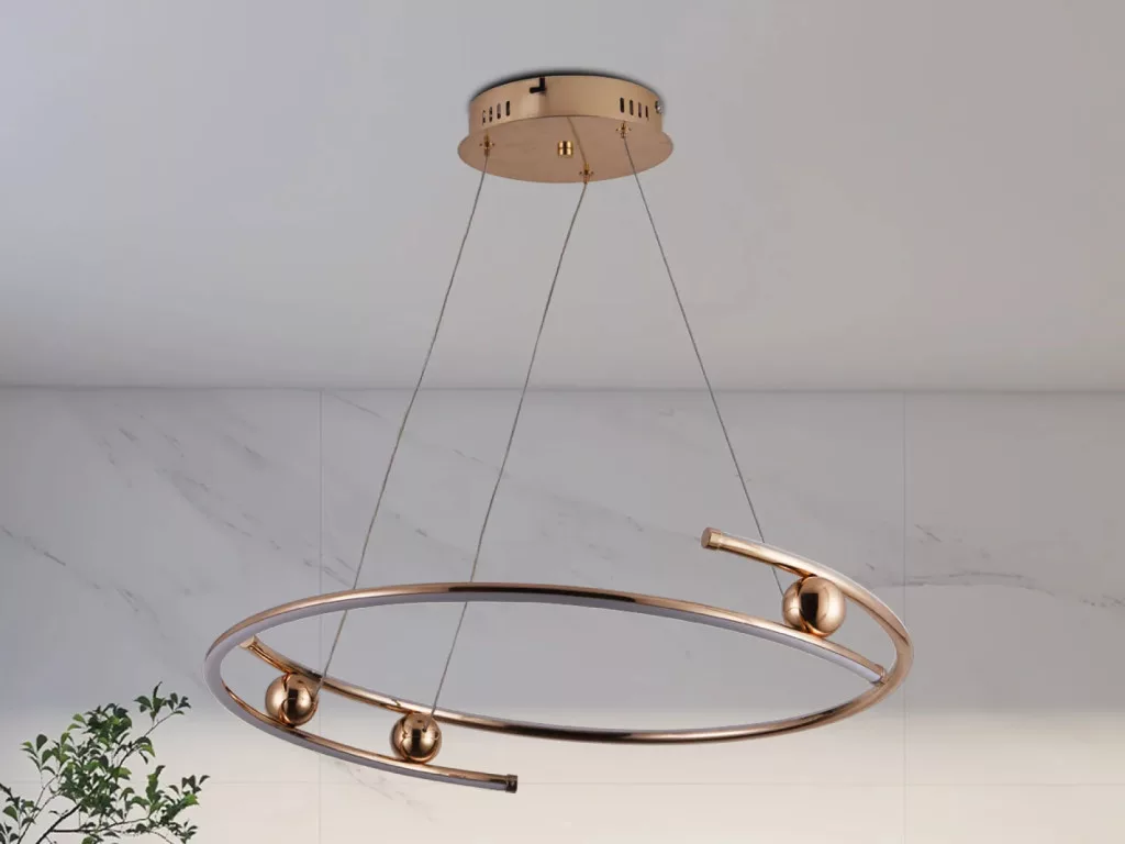 A lámpa anyaga fém és akril, melyek tartósságot és stílust kínálnak. IP20 védettséggel rendelkezik, így beltéri használatra ajánlott. Nettó tömege 1000 g, a mérete 600 mm átmérőjű.