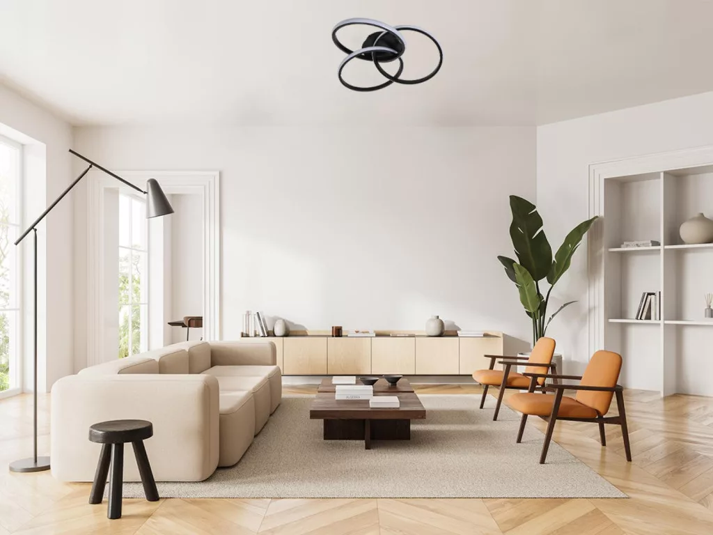 A NEDES márkájú LED mennyezeti lámpa, 70W teljesítményű, modern dizájn elemekkel és RF 2,4 GHz-es távirányítással felszerelve, ideális választás konyhákba, nappalikba, hálószobákba, étkezőbe és folyosókra.