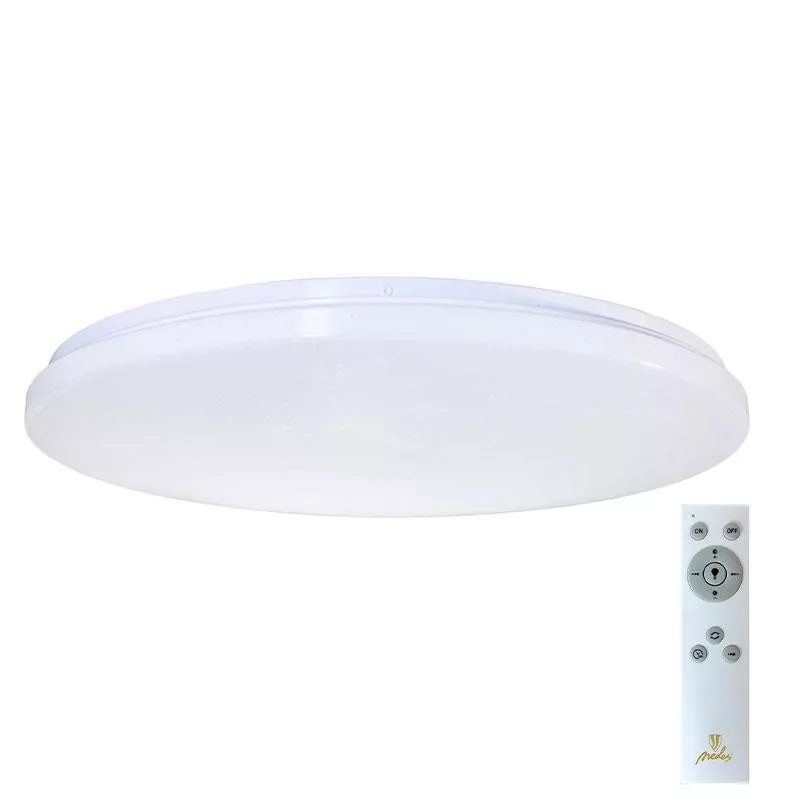 Műszaki adatok: fogyasztás 60W, fényáram 4500 lumen, méret Ø590 x 70 mm, színhőmérséklet 3000K - 6500K, dimmelhető, éjszakai mód, távirányítóval vezérelhető, sugárzási szög 120°, feszültség AC180 - 260V, élettartam 25 000 óra, kapcsolási ciklusok 20 000, védettség IP20, anyag fém fehér, búratípus akril opál fehér, nettó tömeg 1700 g. A LED nem cserélhető.