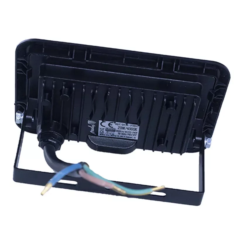 LED reflektor LF0022 fekete kivitelben, 20 W teljesítménnyel, 1600 lumen fényárammal és 4000K színhőmérséklettel, semleges fehér fényű világítást biztosít. A készülék tartozékaként egy masszív tartó található, amely megkönnyíti a rögzítést és a pontos irányba állítást. A reflektor magas minőségű LED chipet használ a hatékony és egyenletes világításért.