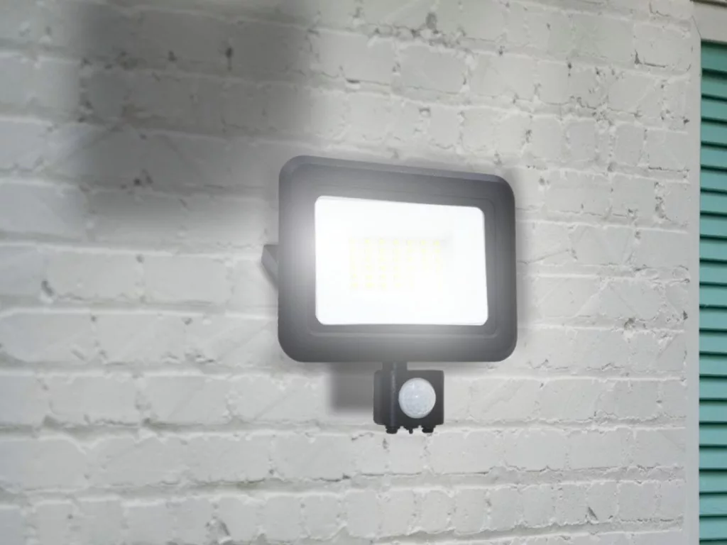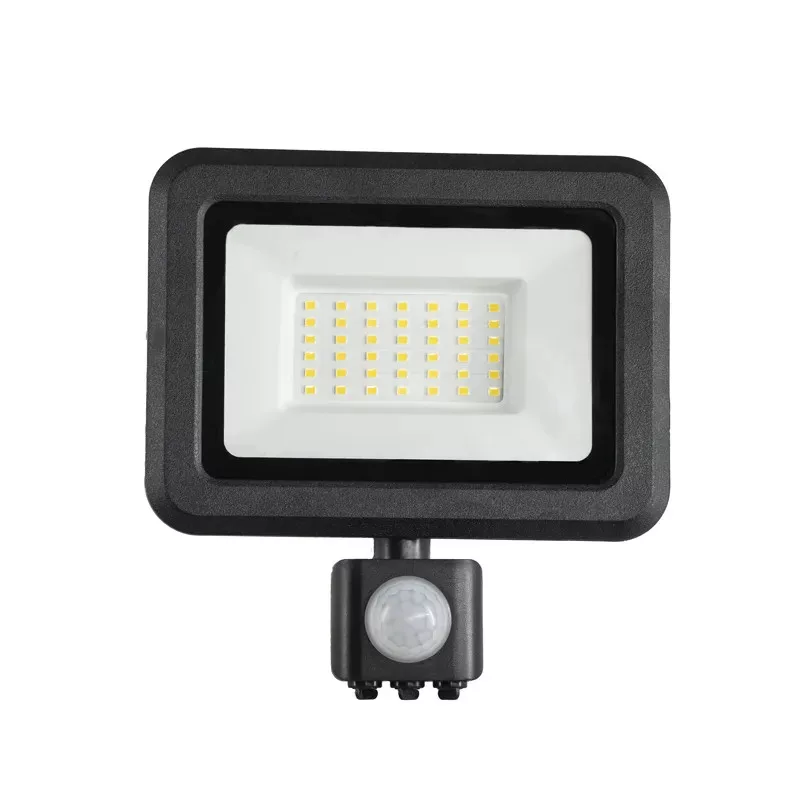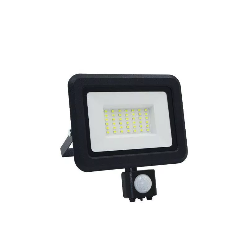 LF0023S LED reflektor fekete színben 30W teljesítménnyel, 2400 lumen fényerővel és 4000K semleges fehér fényszínnel, tartozékként tartóval és mozgásérzékelővel (PIR) ellátva. Kiváló minőségű LED chip biztosítja a hosszú élettartamot és energiahatékonyságot.