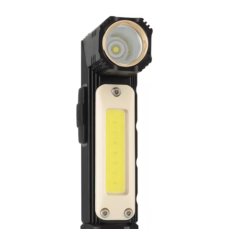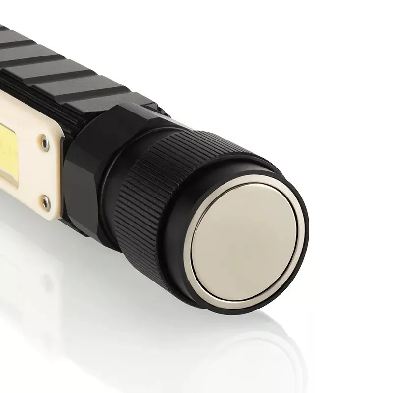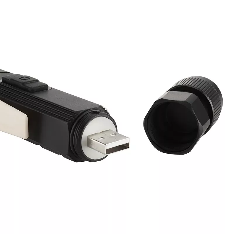 Masszív kialakítású, 1x 14500 Li-Ion 800 mAh akkumulátorral, 5V/1A töltési bemenettel rendelkezik. A töltési idő approx. 3 óra. Több működési módot kínál: 100% SMD 200 lm 2 órán át, 30% SMD 60 lm 3,5 órán át, és 100% COB 120 lm 3,5 órán át. A lámpa 90 fokban állítható, és a csomag tartalmaz gumipántot a fejre való rögzítéshez, így fejlámpaként is használható.
