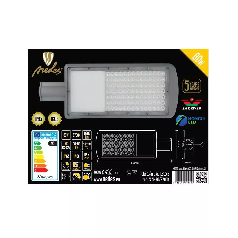 Aszimmetrikus LED utcai lámpa a NEDES márkától, természetes fehér (2700K) fénnyel. Kiemelkedő teljesítményt és energiahatékonyságot kínál, ideális kültéri utcai világításra, járdák, parkok és utak megvilágítására.