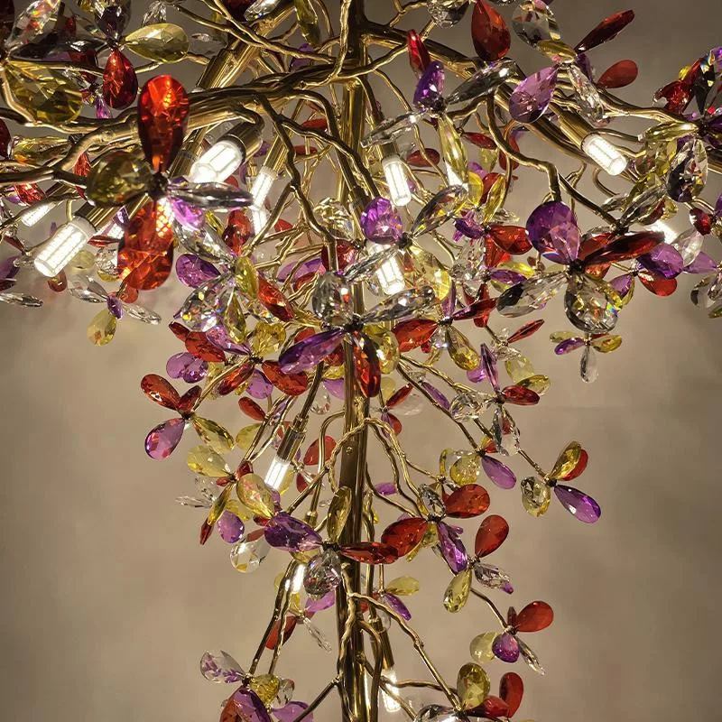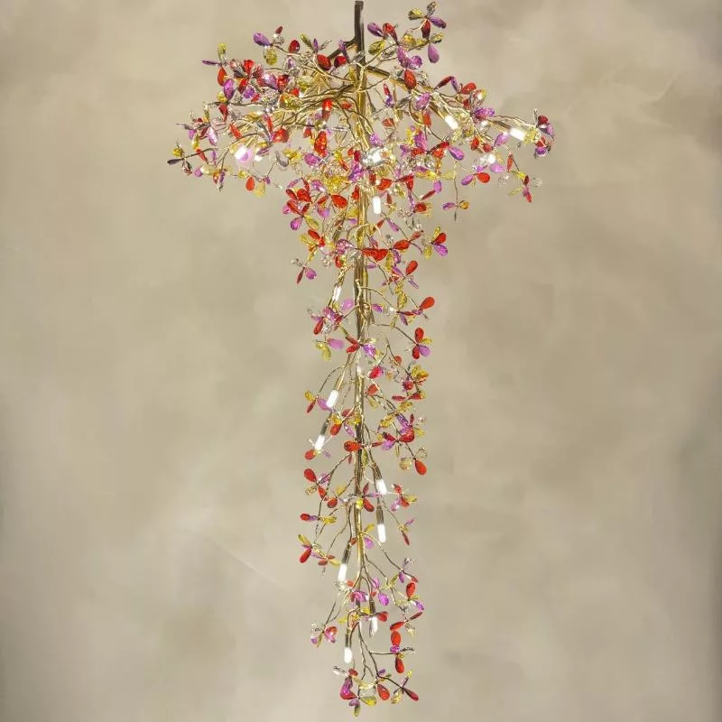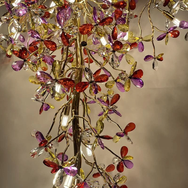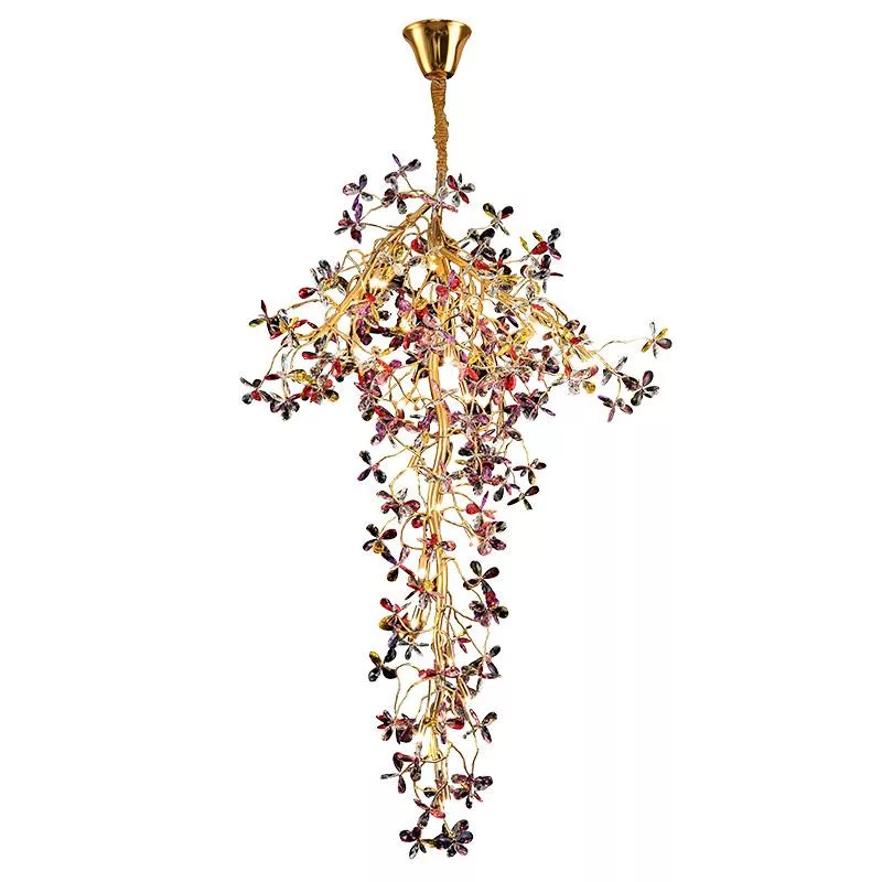 Anyaga minőségi alumínium és kristály, amelyet francia arany színű bevonat és színes kristályok díszítenek, így kiemelve az eleganciát és a fényűző megjelenést. A magasság állítható, így a lámpa tökéletesen igazítható a különböző belmagasságokhoz.