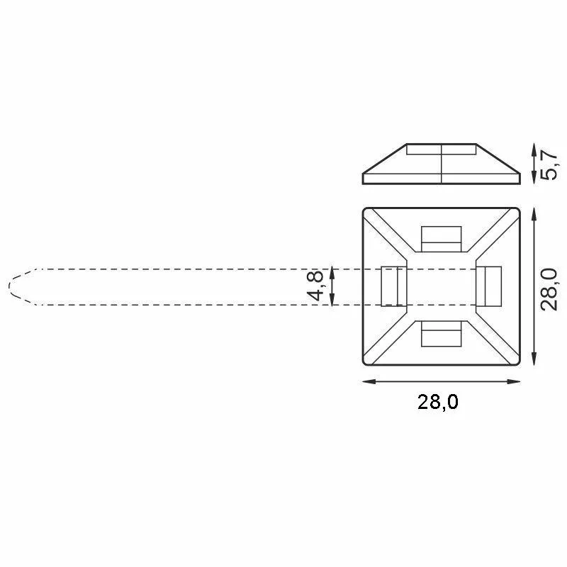 A tűzállósági minősítés (94V-2) garantálja az elektromos biztonságot. Kompakt mérete (28x28x5,7 mm) könnyű szerelhetőséget tesz lehetővé, miközben 4,8 mm-es kötözőszalag használatát teszi lehetővé.
