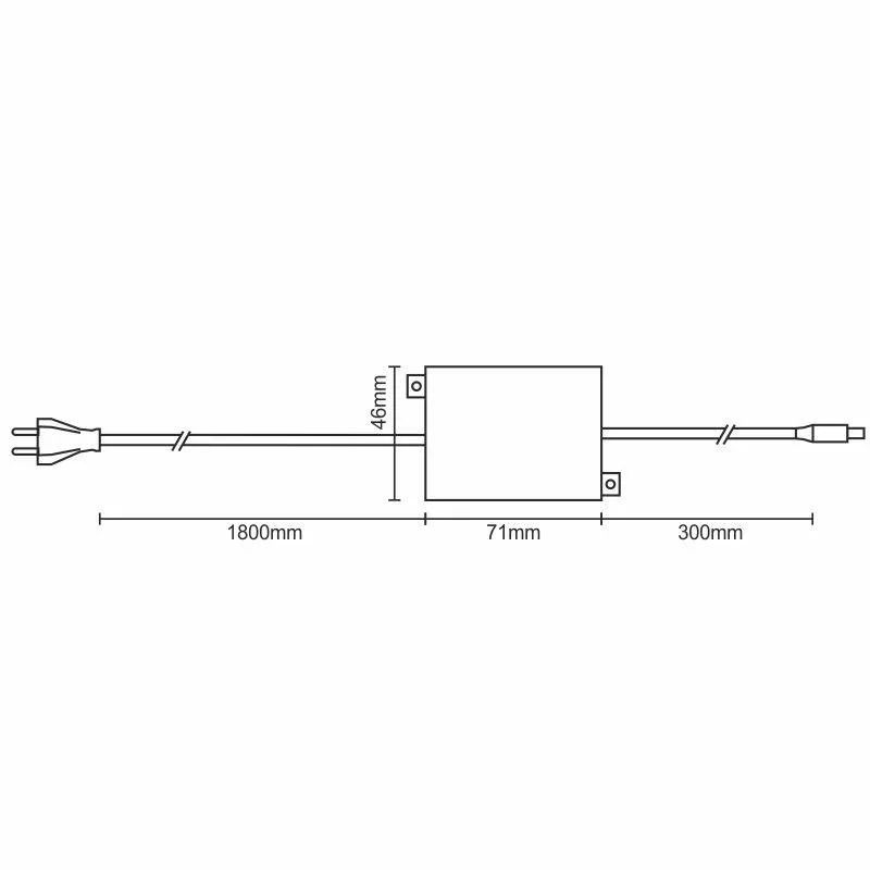 A tápegység mérete 71 x 46 mm, betáp kábele 1800 + 300 mm hosszú, csomagolási egysége 1, 5 vagy 50 darab lehet.