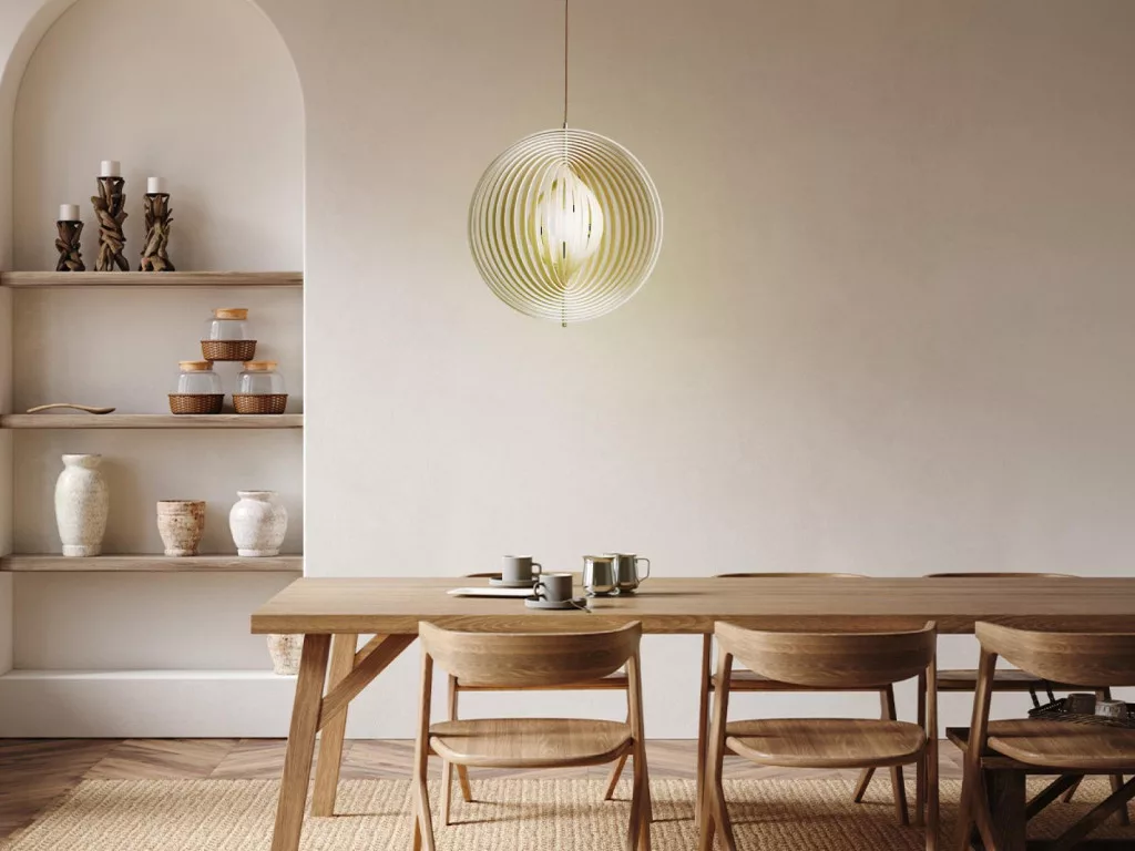 A NEDES tömör fa gömb függőlámpa modern stílusát és időtálló formáját hálószobák, étkezők és nappalik számára ajánljuk. Természetes színű tömör fából készült, egyedi fa megjelenéssel, amely a tér fontos eleme lehet.