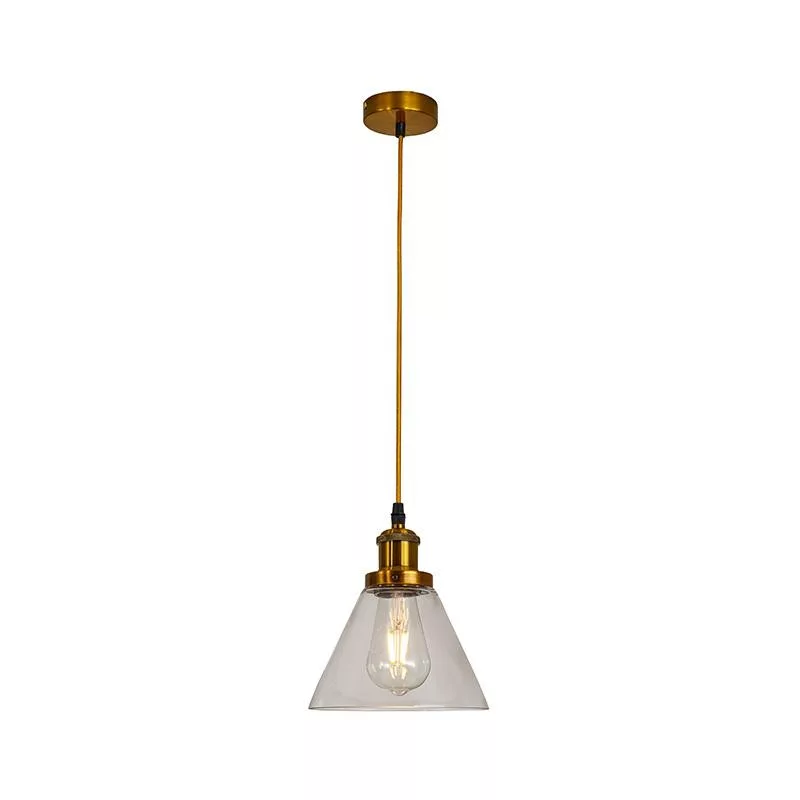 - Anyaga: átlátszó üveg, antik arany fém és textil kábel